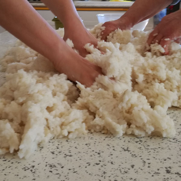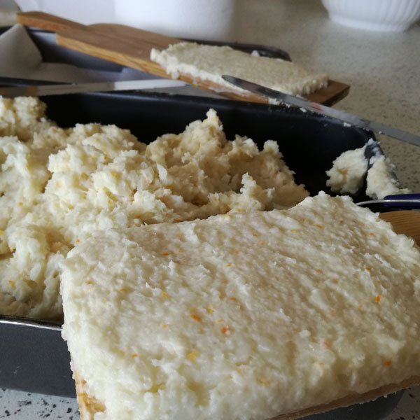 - Mescola il riso con la buccia d’arancia e il lievito; continua ad impastare unendo la farina poco per volta.